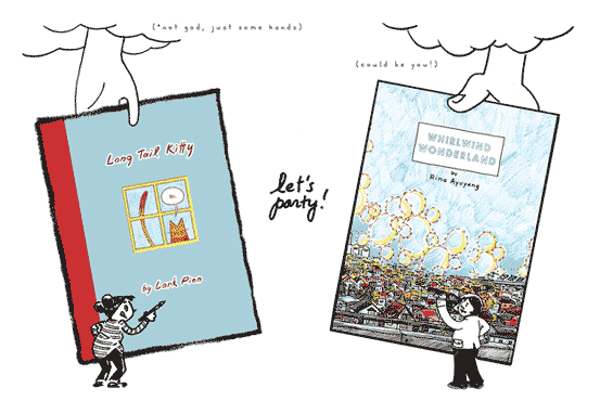 Come on out and celebrate new books by Oakland cartoonists Lark Pien and Rina Ayuyang. Yummy food by us and musical beats by our favorite DJ, Trevor Alixopulos