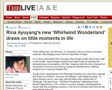 The Pittsburgh Tribune Review has a nice article about “Whirlwind Wonderland“. I’m pretty honored to be profiled by the paper. Also the article talks about Copacetic Comics. Make sure to check out their new space in Pittsburgh’s Polish Hill whenever you’re in the neighborhood. I’m always a mess during interviews. Thanks to Mike Machowsky for the great piece. You can read it here: